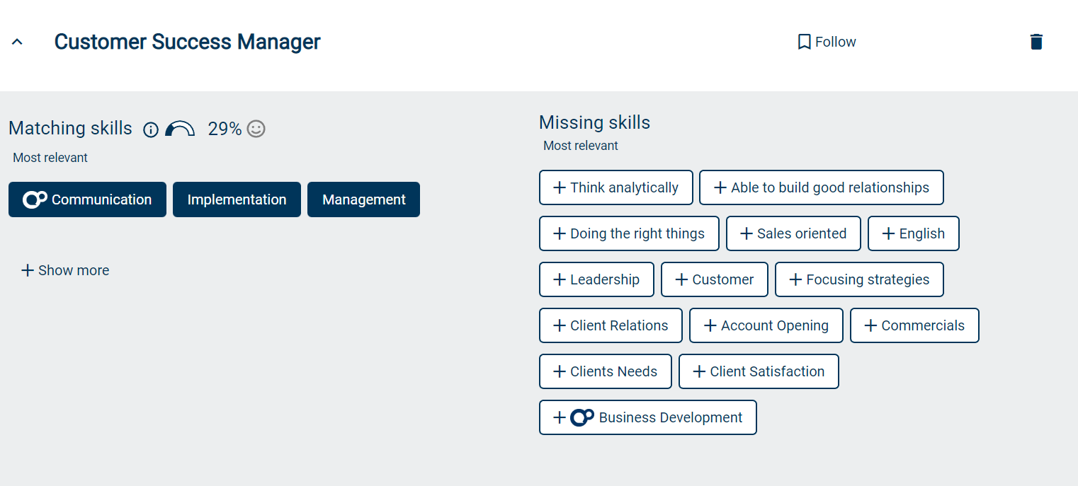 It defines and tracks the skills of your learners. This helps them to upskill and reskill through job-related experiences, interactions with others, and through learning experiences on your LXP.
