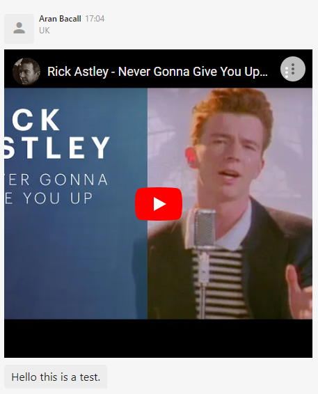 Add the URL of a video to be embedded in the message, e.g. a link to a Youtube video.