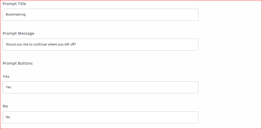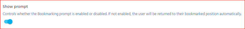 - Disabled - If the prompt is disabled the learner will automatically be returned to their previously position within the course.