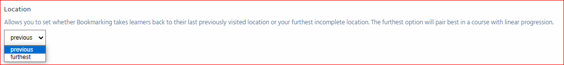 - Furthest - Will return the learner to the further component/block/page they had reached within the course.