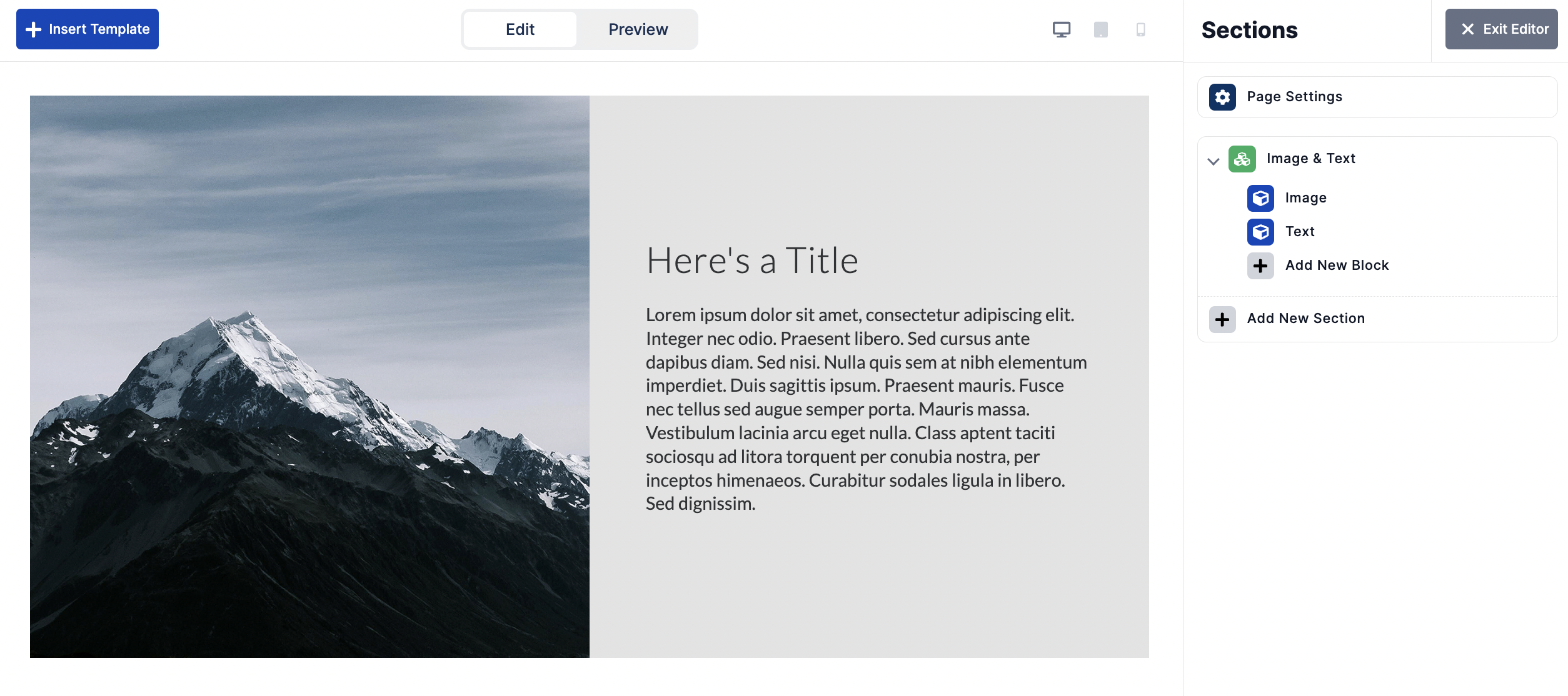 In a Flex slide, add an Image & Text template |