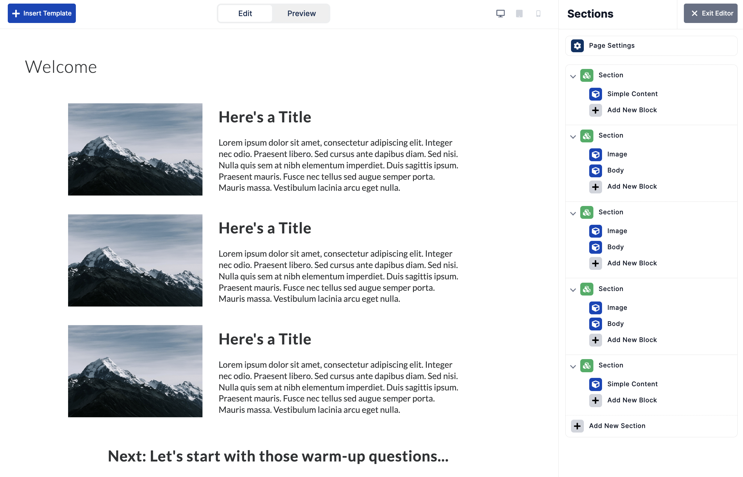Add Template from the Add Page modal or upgrade legacy to Flex |