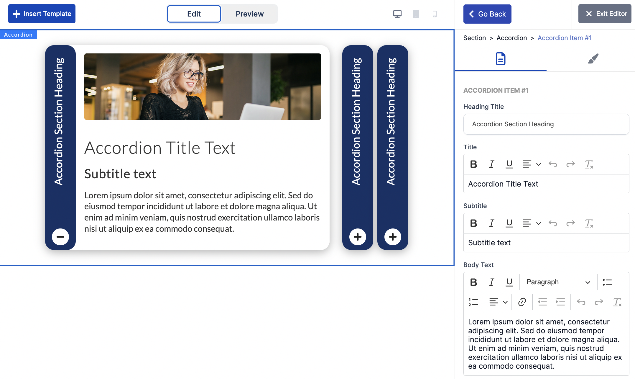 Add an Accordion block or upgrade legacy to Flex |