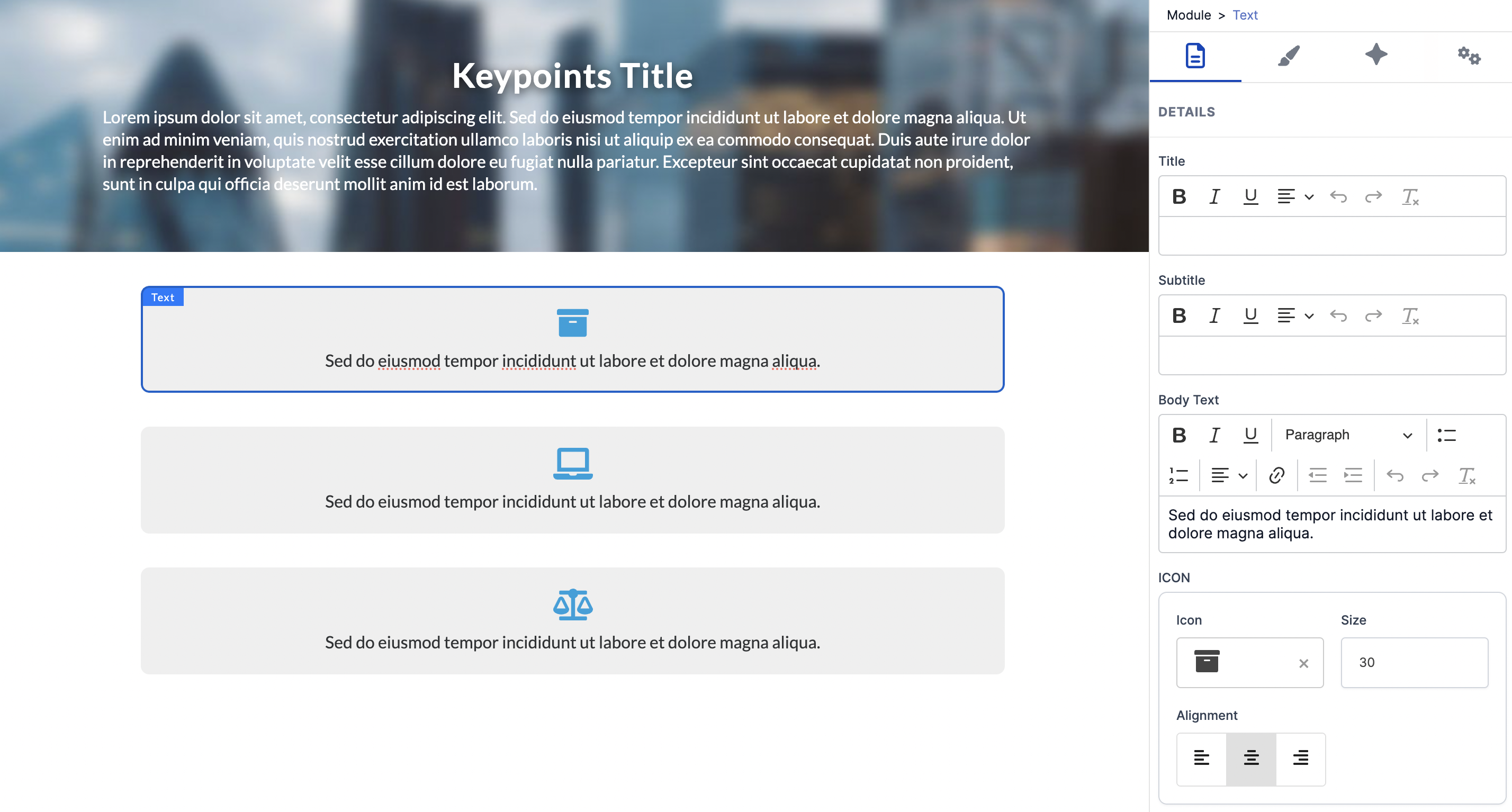 In Flex slide, add & modify an Image & Text template |