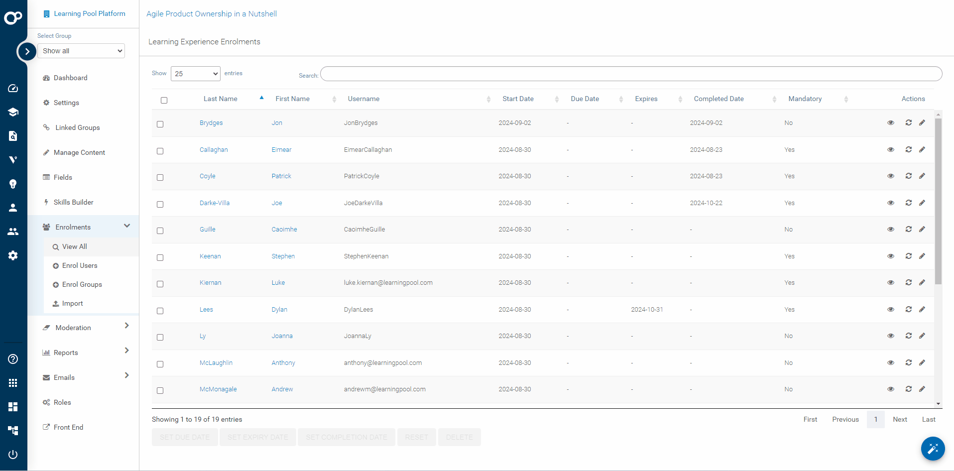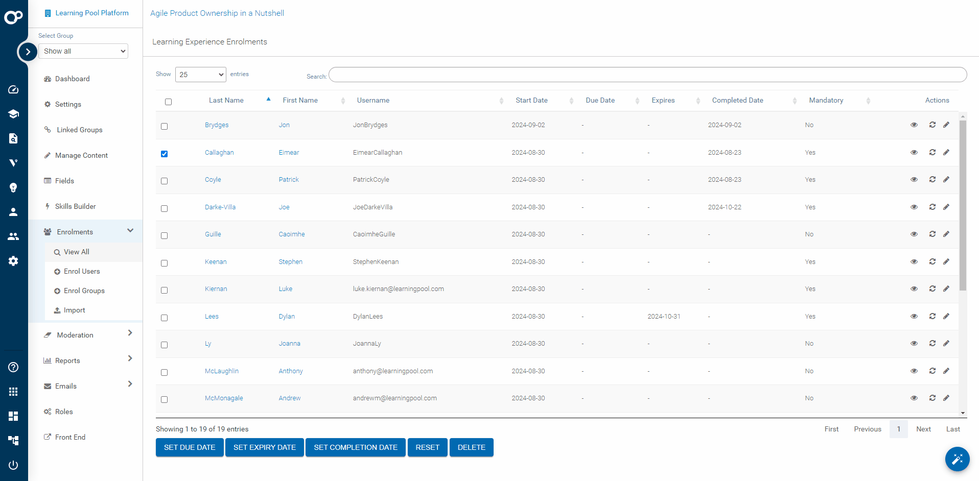 Select one or more enrolments from the Learning Experience Enrolments table.