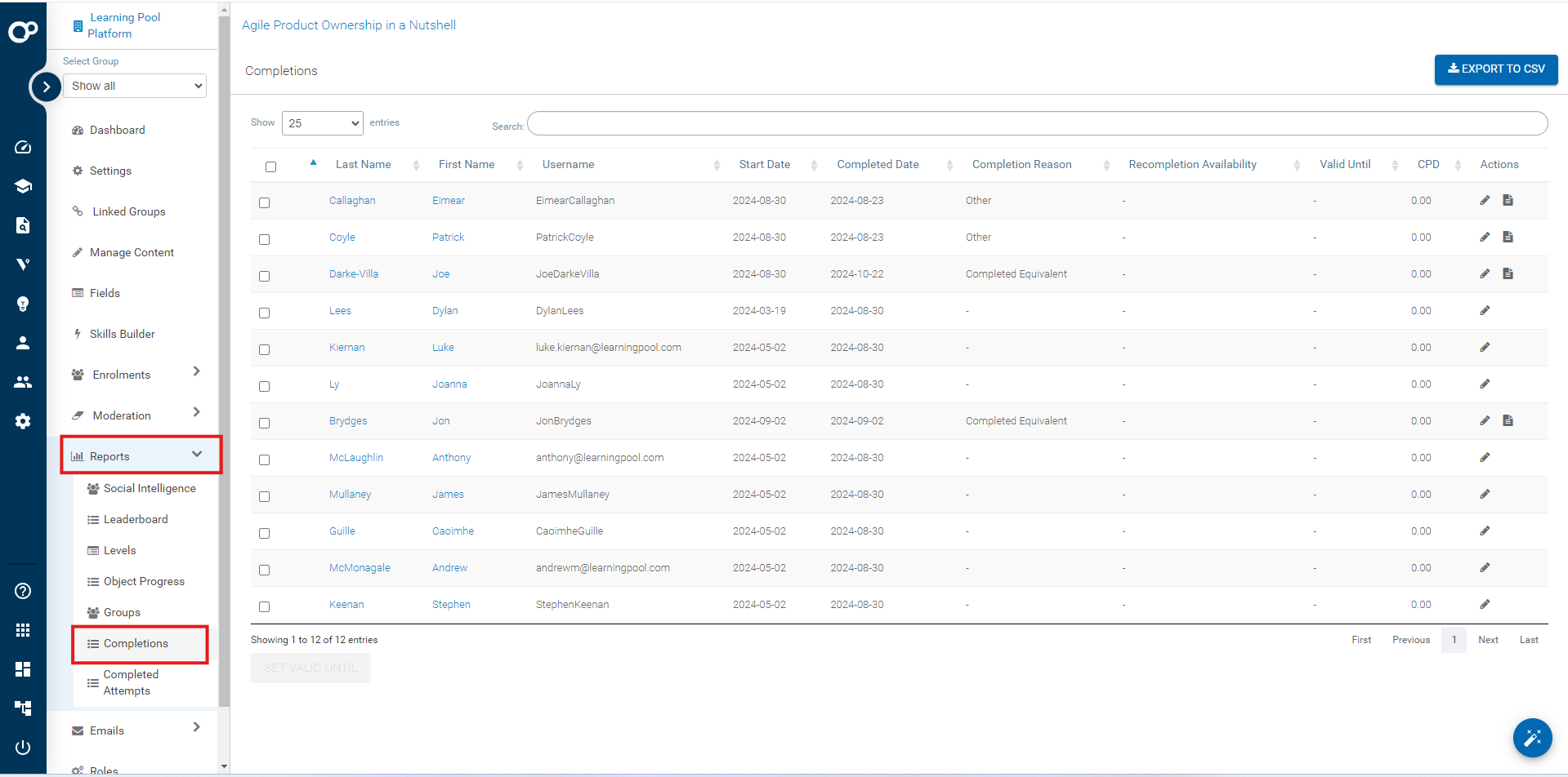 Note: It is also possible to mark Learning Experiences as complete using the existing Completion Record Import feature. The two new columns, Completion Reason and Completion Notes, have been added to the CSV template to support this functionality. For more detailed instructions on using the Completion Record Import feature, please refer to our Completion Record Import Documentation.