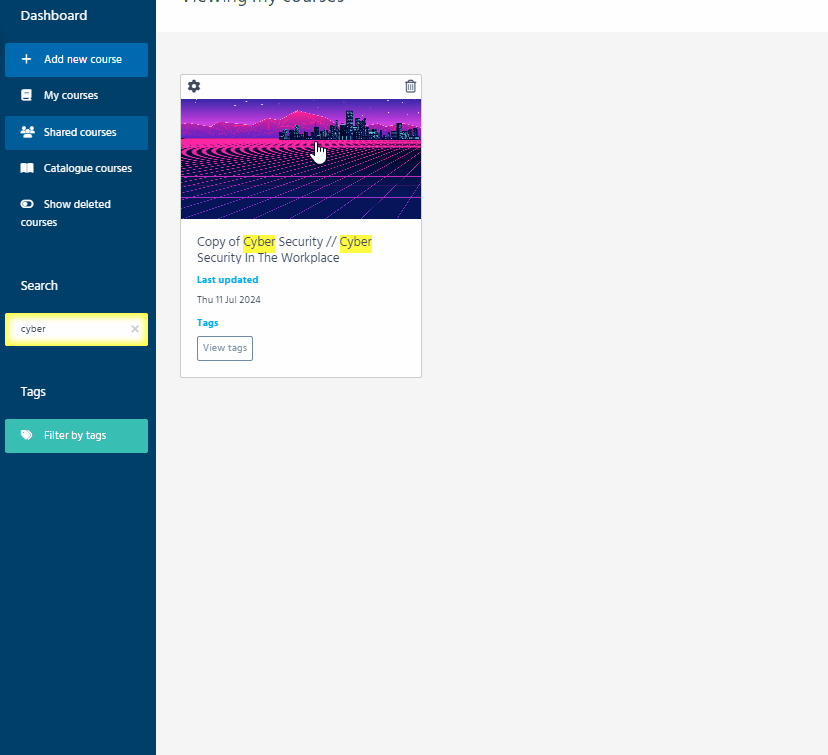 All of the users in your organisation will now see the course available to them in Shared Courses.
