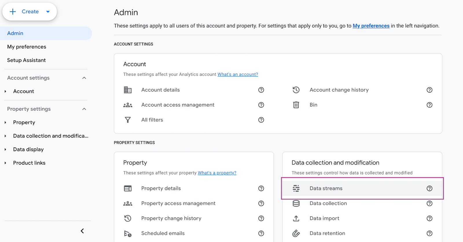 When logged in >> click on “ADMIN” >> click on “Data Stream”. |