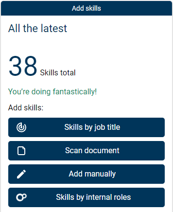 This widget provides a count of the number of skills the user has validated, along with 4 ways they can add skills to their Skill Profile. |