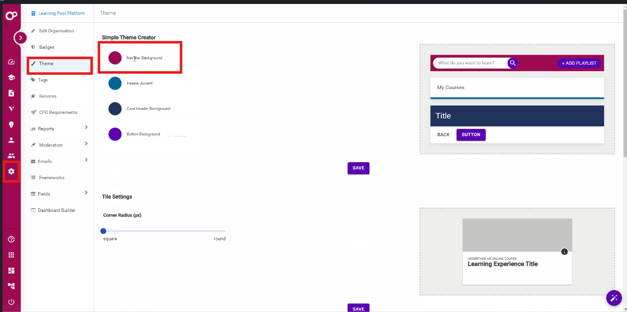 - From here, you can change the background color of the vertical navigation bar to match your branding or preference.