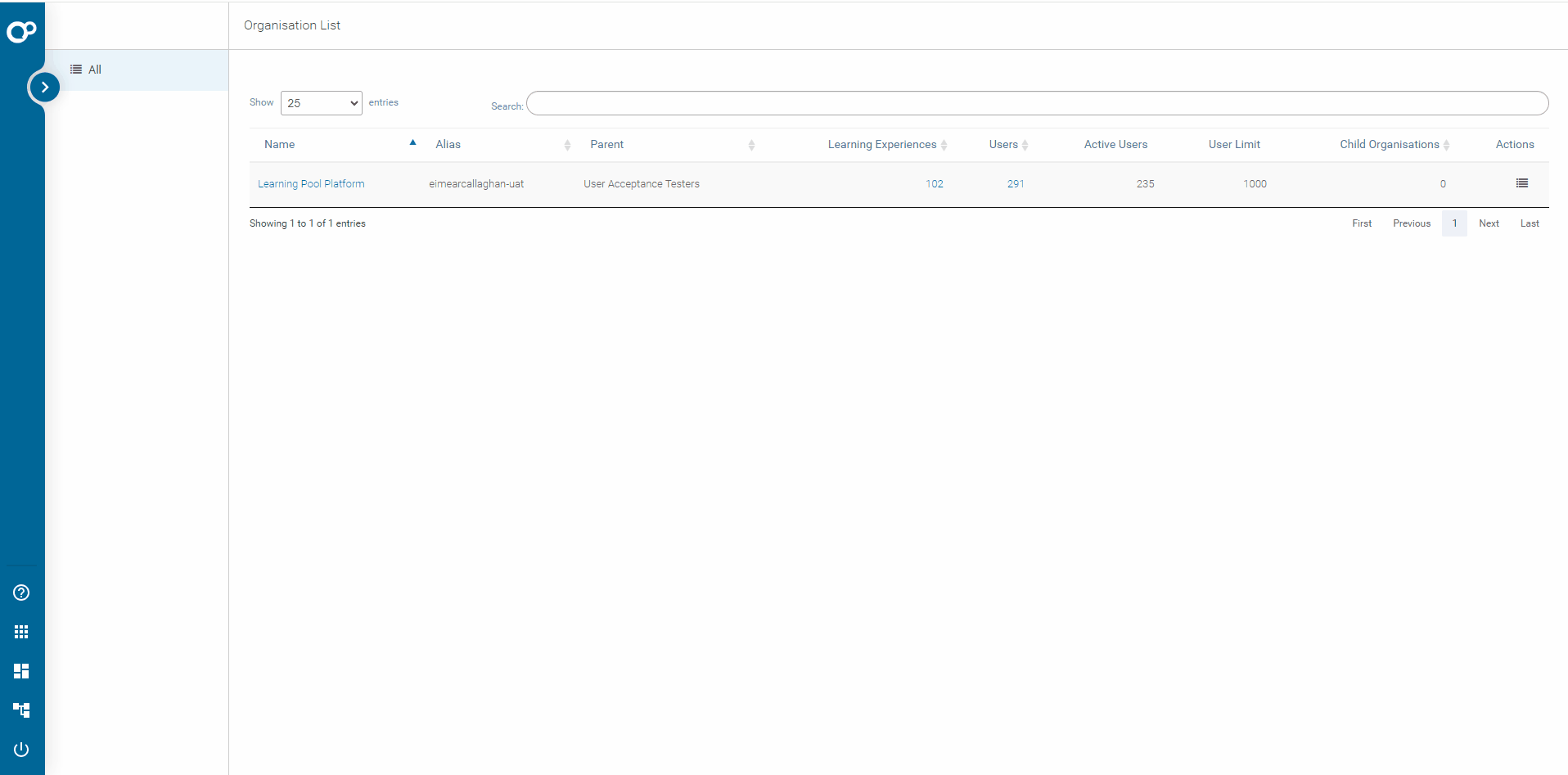 - At the bottom of the vertical navigation bar, clicking the Organisation List button takes admins to the Organisation List page, allowing easy access to manage multiple organizations (if applicable).