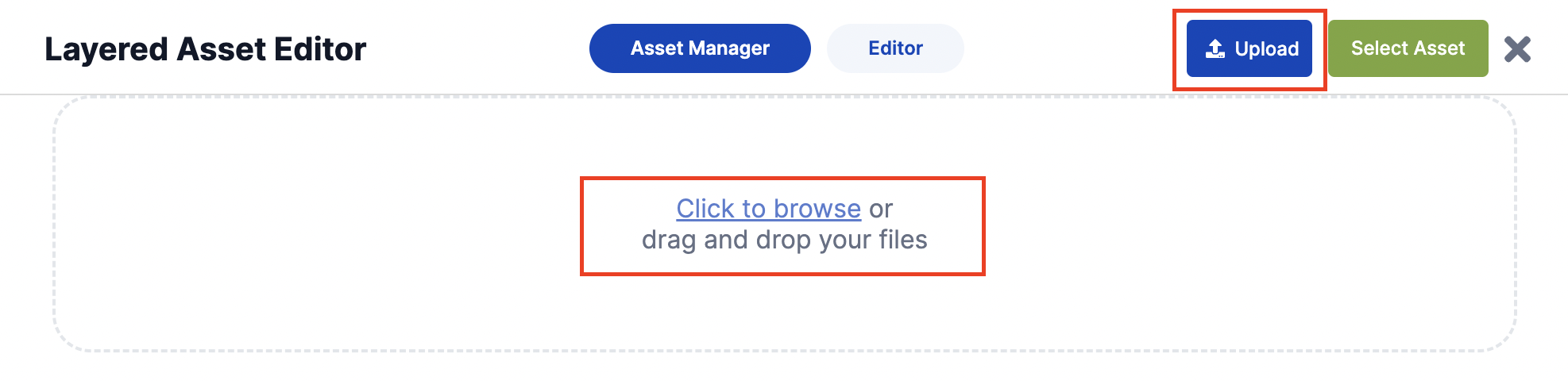 1. Click the "Add Asset" button and select the "Image".