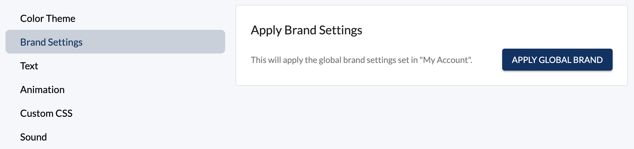 2. Click on "Apply Brand Settings" to apply the global brand settings that have been created by LP admins.