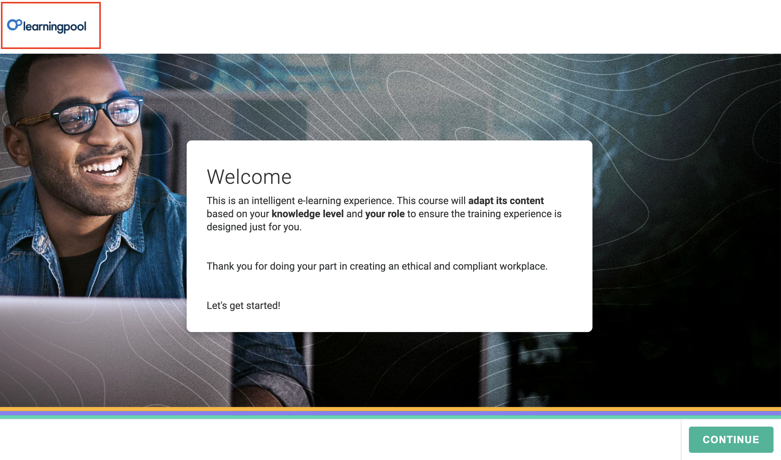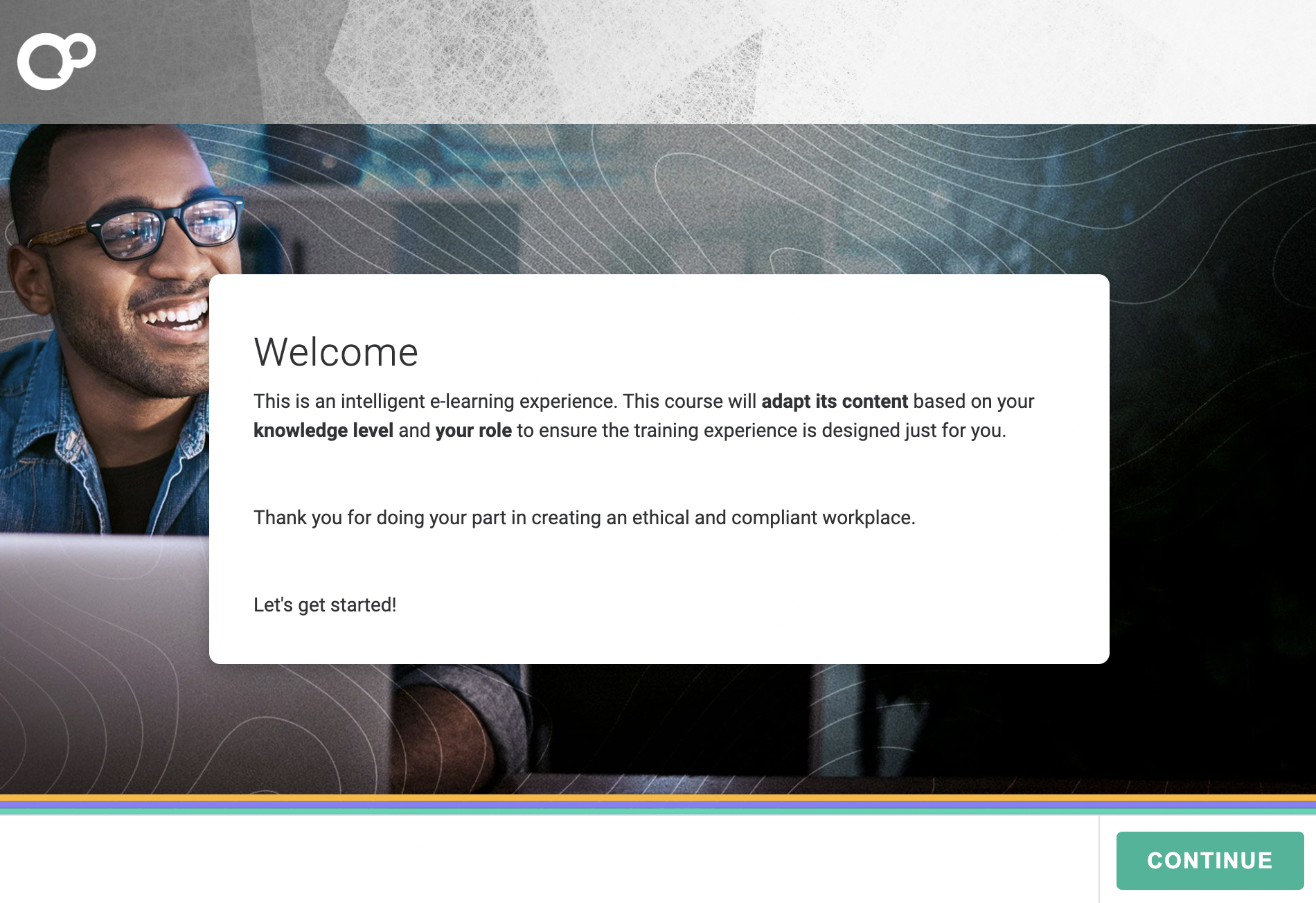 The Company Logo will be displayed on the title screen and the header of your course.