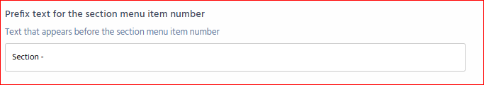 - Prefix Text for the Section menu item number - The text that will be added before the number on the menu item for each of the sections within the course.