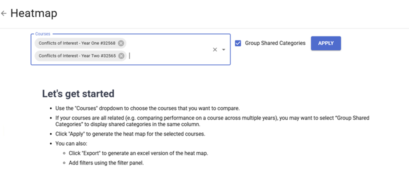 In the example below multiple years of ‘Conflicts of Interest’ training have been selected: