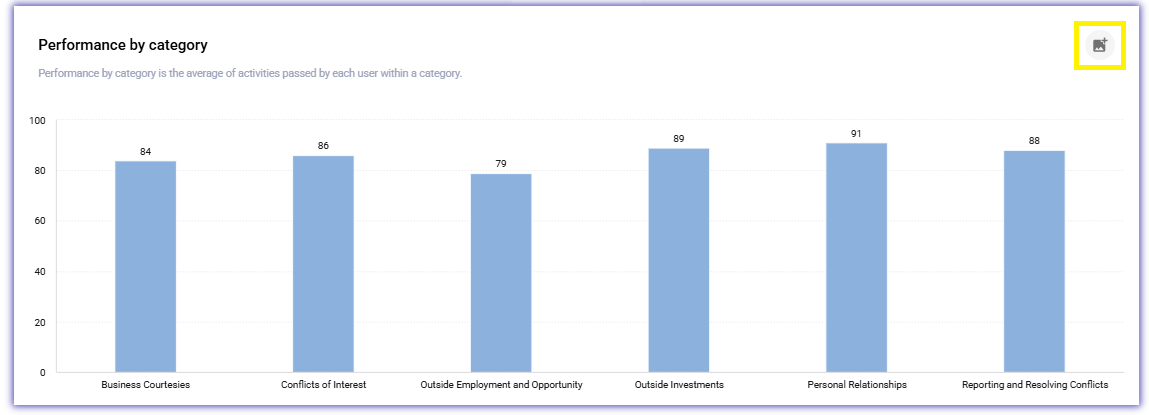 Any Dashboard tile with a photo icon in the top right corner can be saved as an image. Use this feature to quickly capture any data display you see in IQ Analytics for use in presentations or for reference.