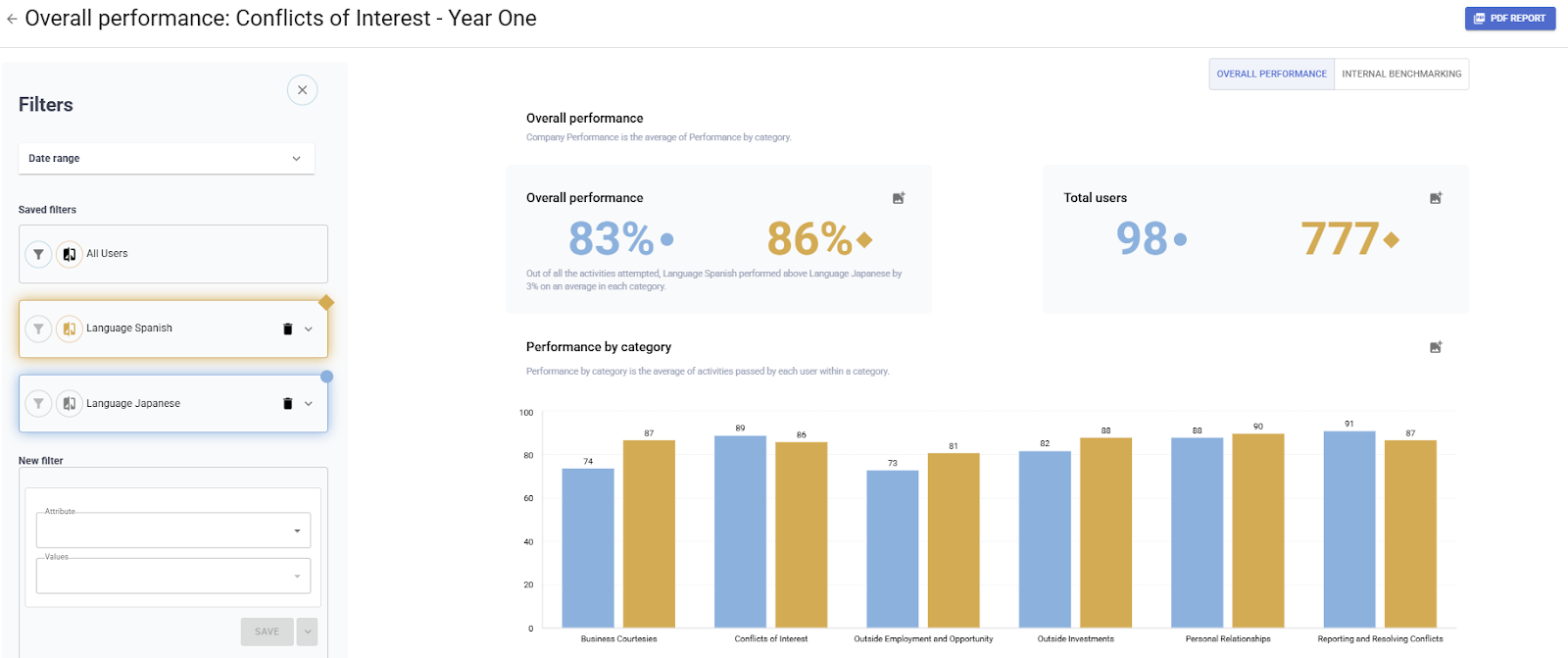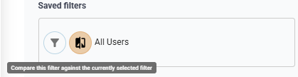 Compare mode allows you to compare the performance of one filter against another or against the performance of All Users.
