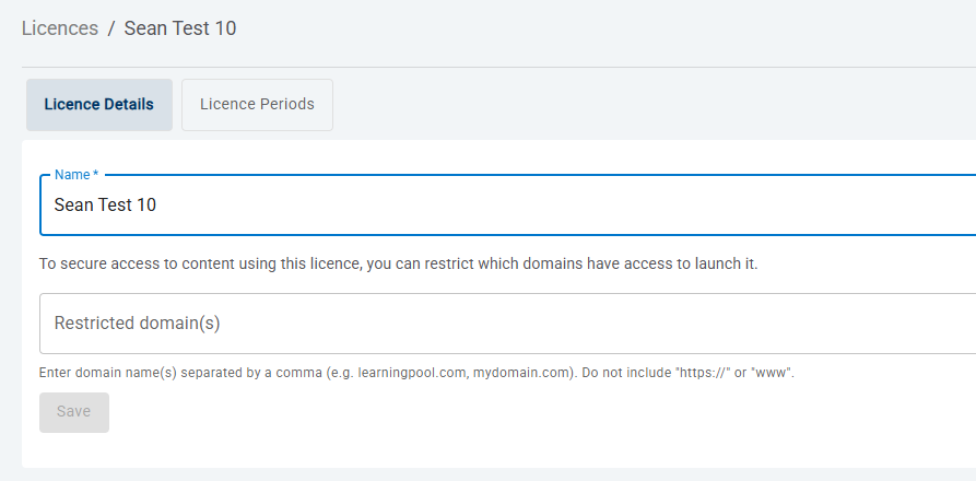 - Click Save to activate the licence.