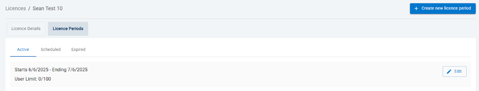 The Licence Period area is divided into three tabs: