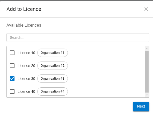 - Select Add to Licence