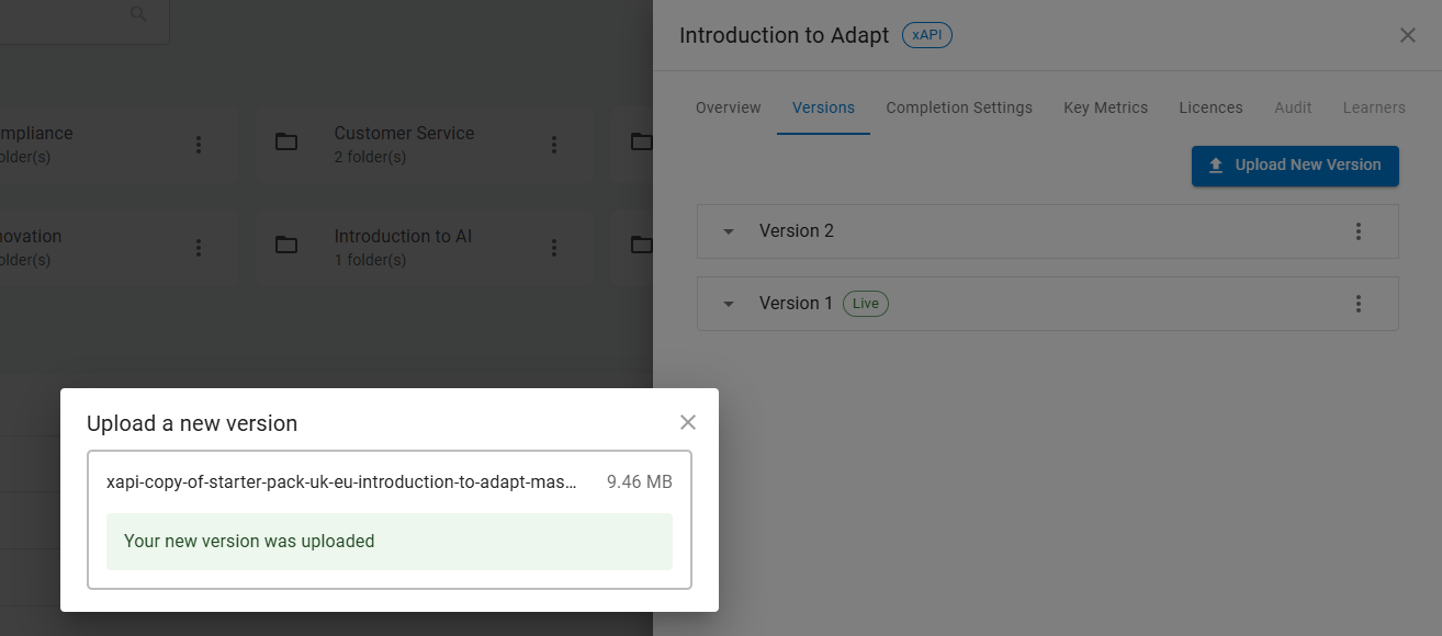 Make sure your learners have the most up to date content at all times. With version control you can upload the latest version of content to replace the existing version.