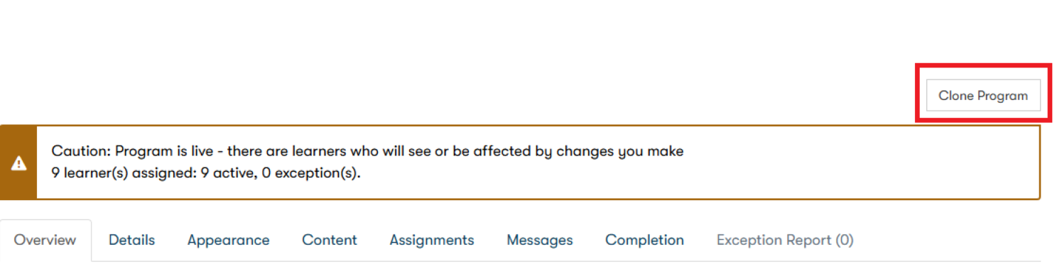 When the process has finished, you will be in the Program Overview area for the cloned program and the program will be given a prefix of ‘Copy of’. The name of the program can be changed as normal within the ‘Details’ area.