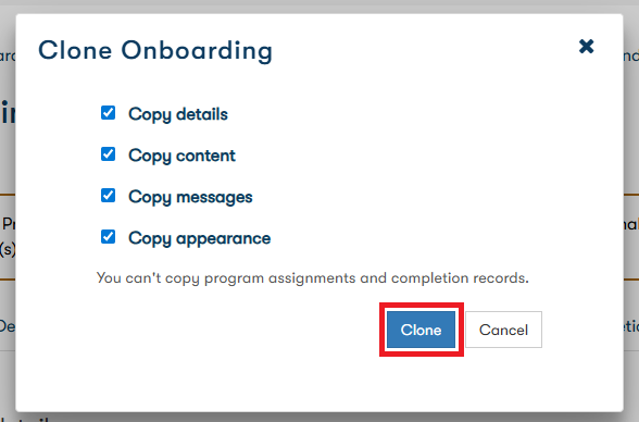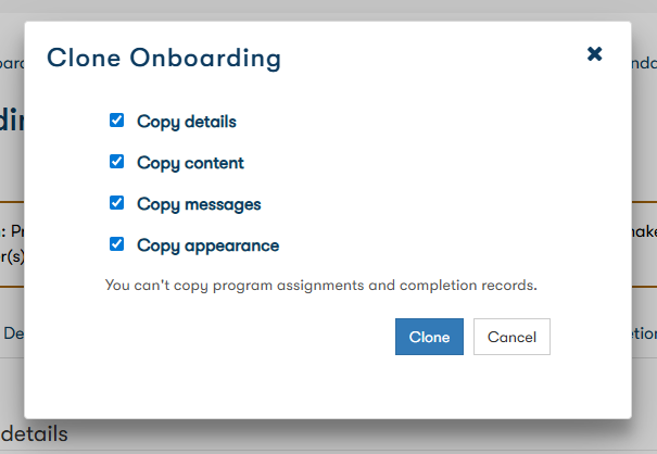 Note: You can't copy program assignments and completion records.