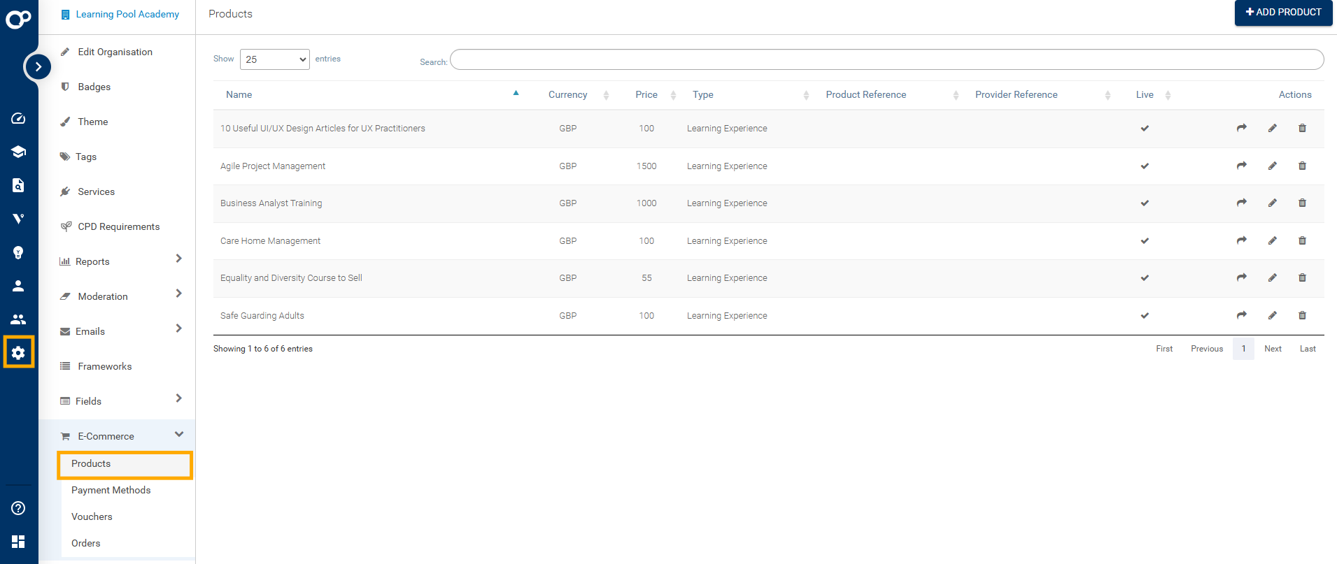 Note: Consider how your learning experience is set up. If it's set to Public and Allow Self Enrolment, then anyone on your platform can find it and purchase it. If a course is Secret it can only be found by directly visiting the course or product URL. If a course does not Allow Self Enrolment, it can only be purchased by directly visiting the product URL. Click here to read more about learning experience settings.