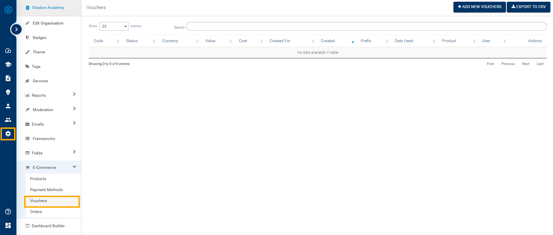To create a voucher, go to E-Commerce > Vouchers: